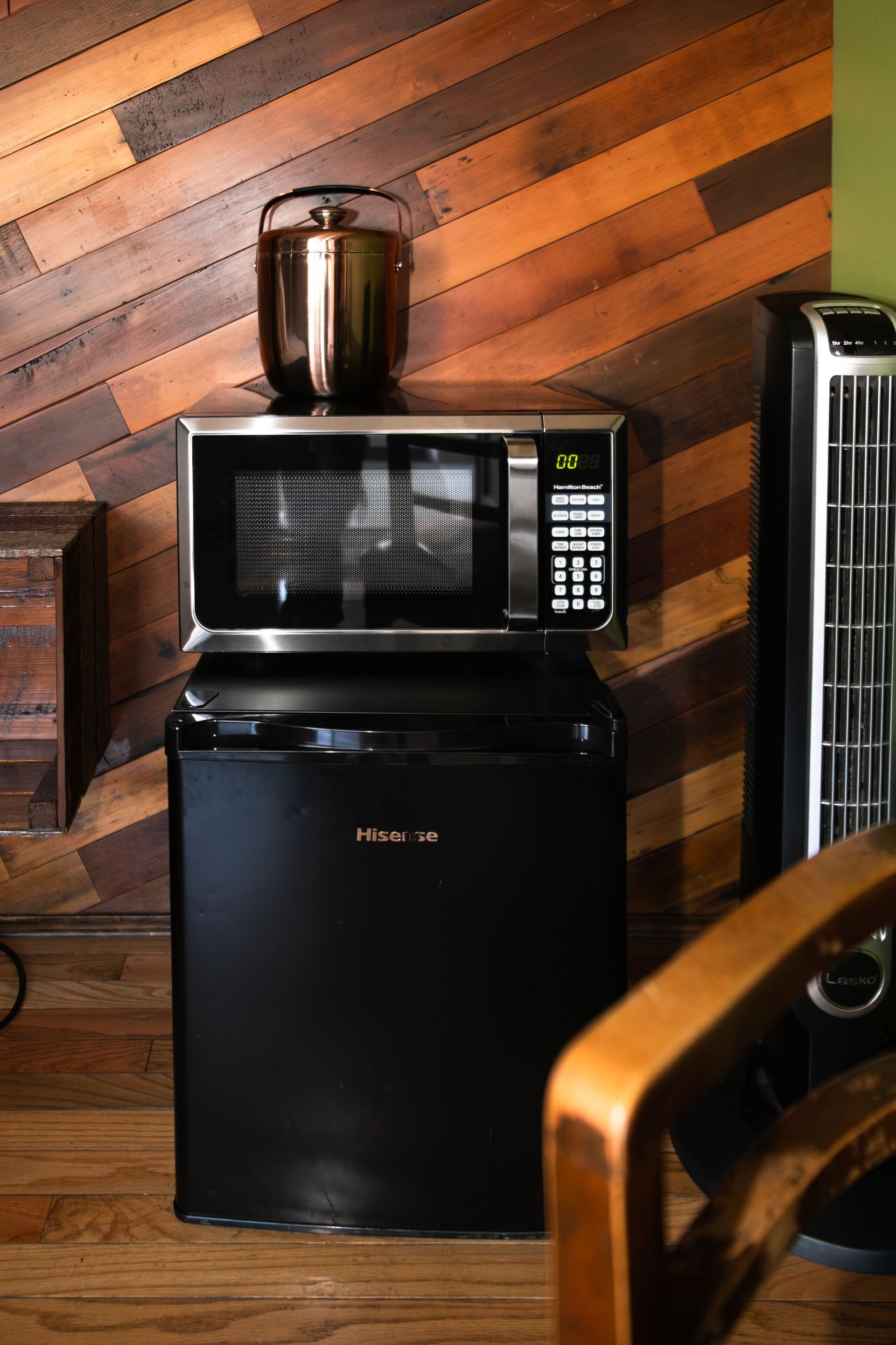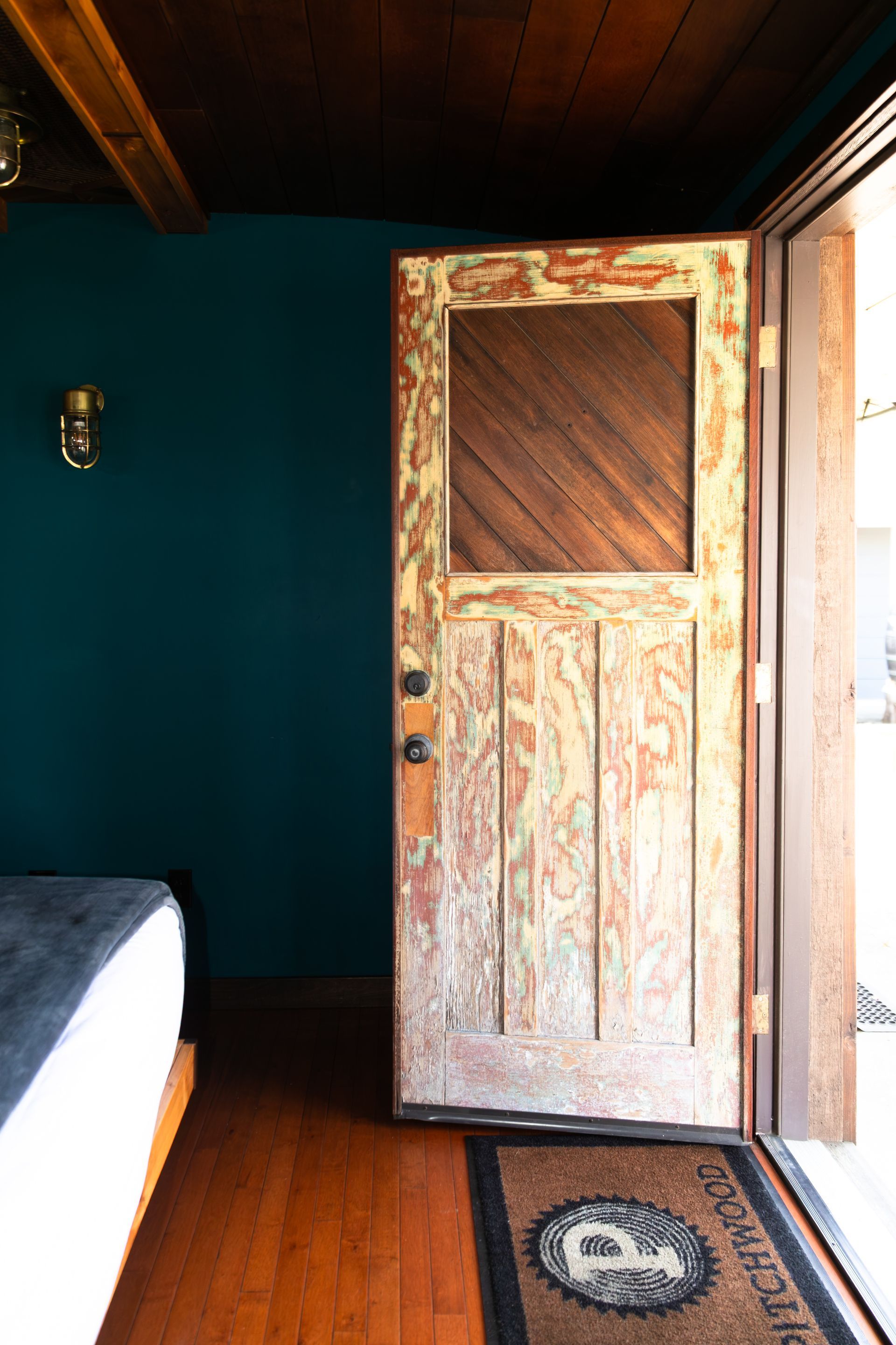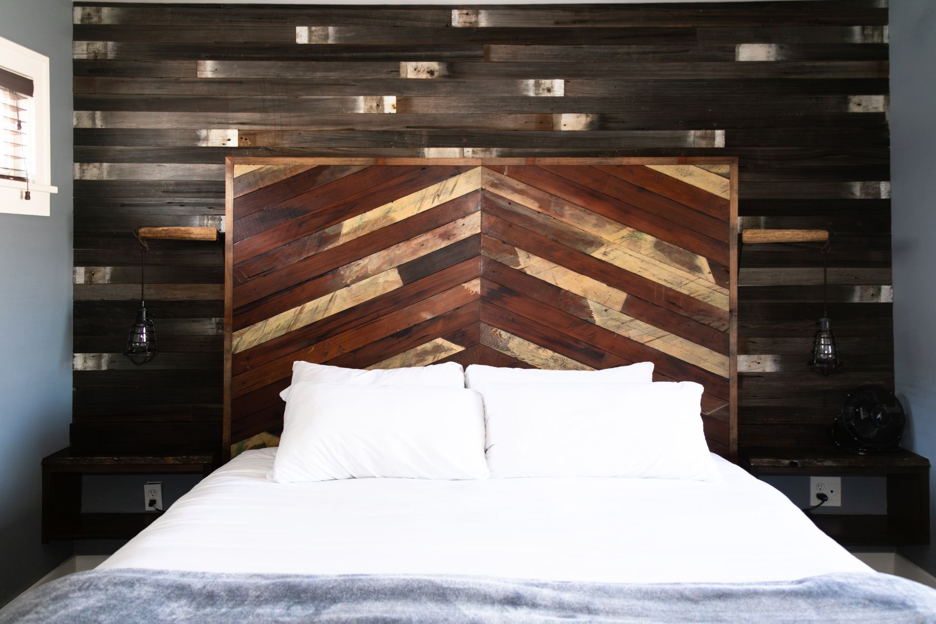 A cozy, minimalist room decorated with reclaimed wood, perfect for those seeking simplicity and comfort.
